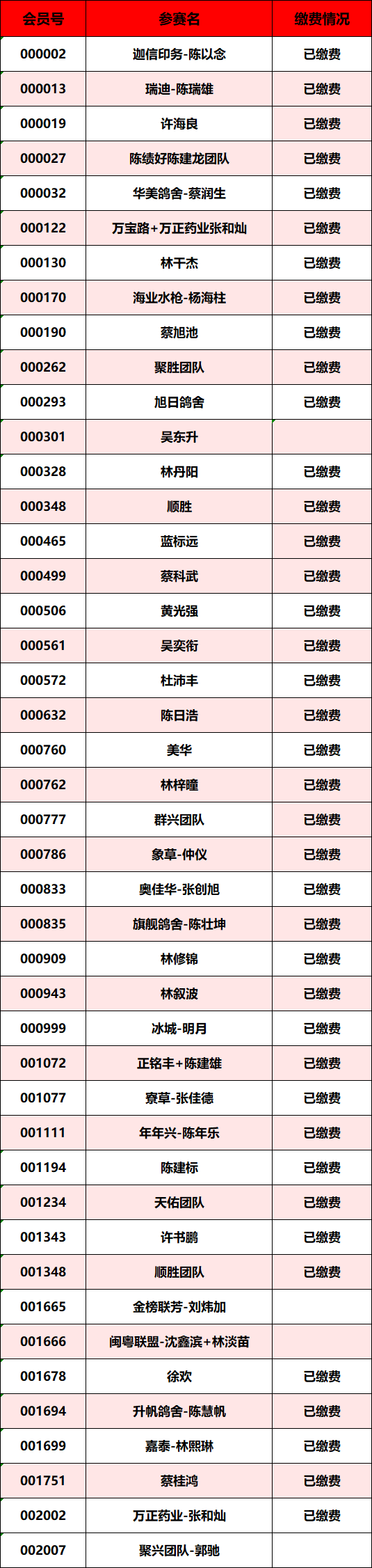 . 广东汕头市顺翔俱乐部2025年秋季南北四关鸽王赛正三关缴费明细
