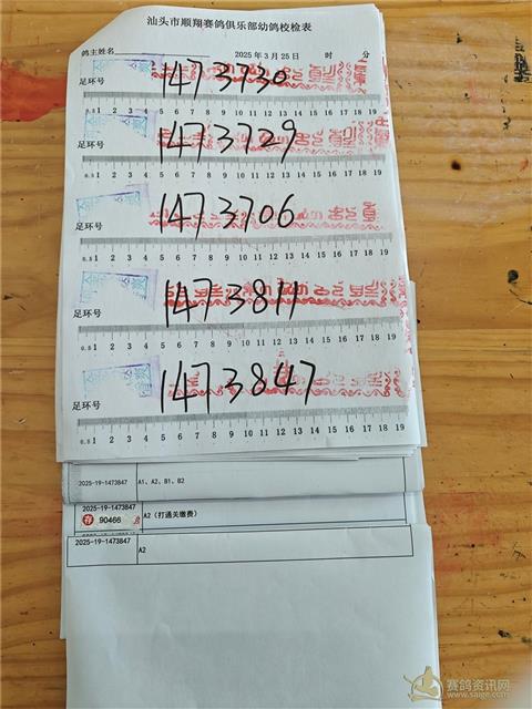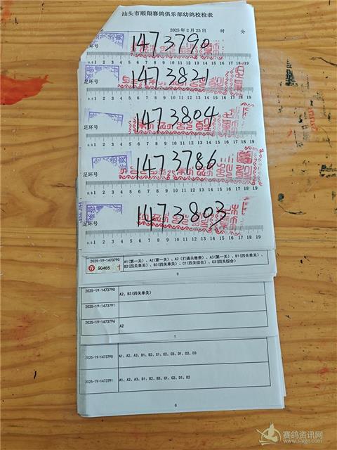 . 广东汕头市顺翔俱乐部2025年秋季南北四关鸽王赛正三关上笼明细