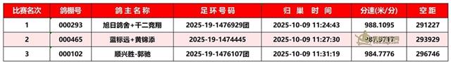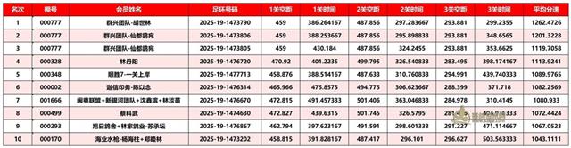 广东汕头市顺翔俱乐部2025年秋季南北四关鸽王赛正三关成绩