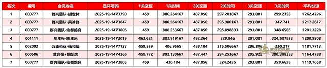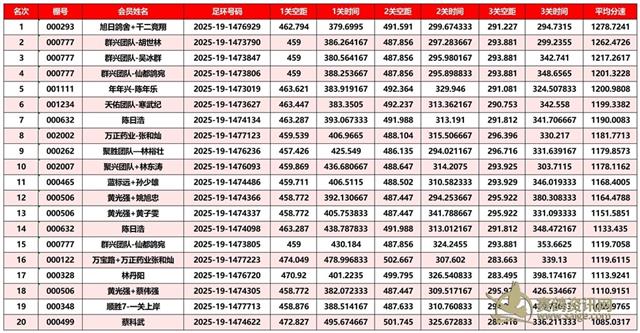 正三关前三名成绩