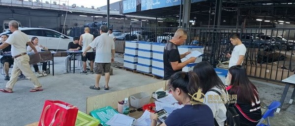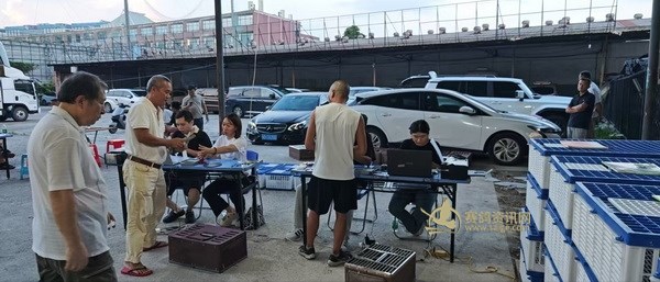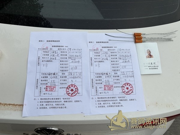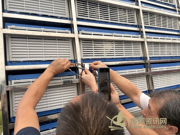 此场比赛,随鸽车来的是白云区鸽会王广辉和两位同志,裁判刘建辉和陈志华同志现场执裁,开始一起检查鸽车海关封索和锁,实查笼数为贰拾贰笼,笼封情况为铅封完好。司放长王广辉同志开启坐标仪测准定位坐标,测出的坐标数据及时向白云鸽会,并汇报司放地的基本情况,商量确定开笼司放时间。