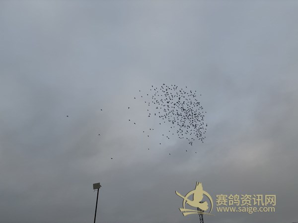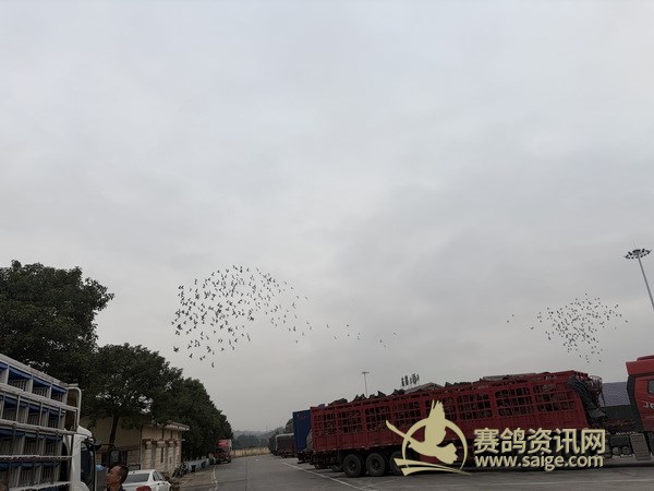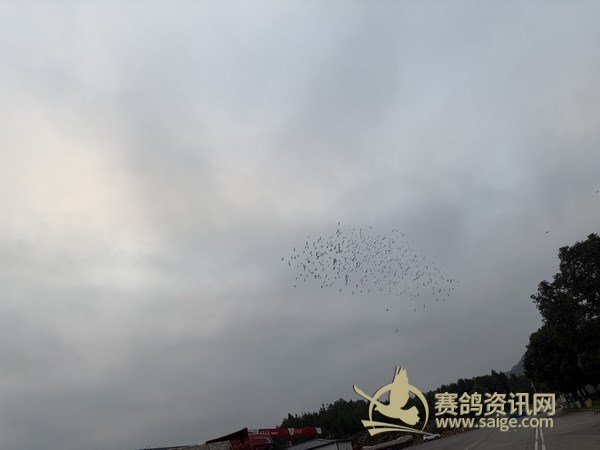 6:41分采用单边开笼,司放长王广辉同志打开笼门,赛鸽们迅速冲出鸽车笼口,拍打着双翅,腾空而起,扇动着翅膀向上攀升,䗙鸽们在半空中稍作盘旋,定准方向直往西南方,抱团迅速飞去,鸽群走势良好,不一会儿就消失在不远处的山林中。