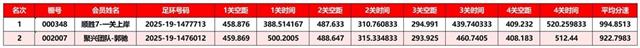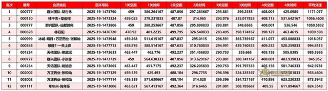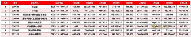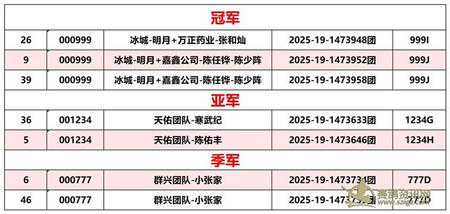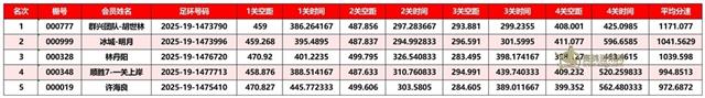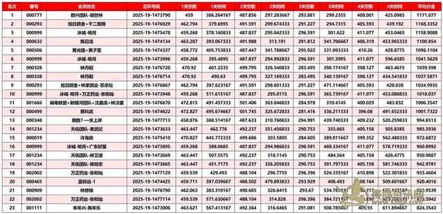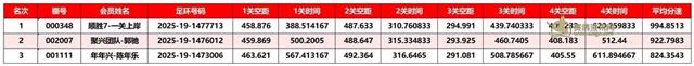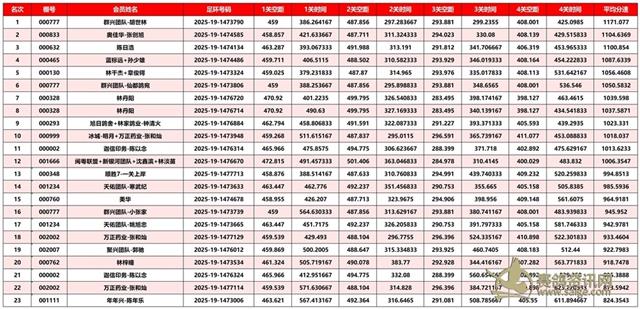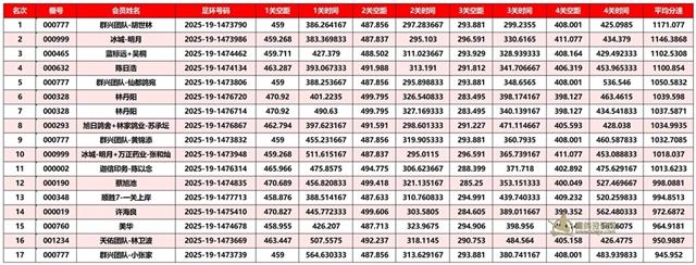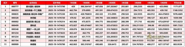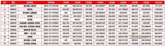 正四关前三名成绩