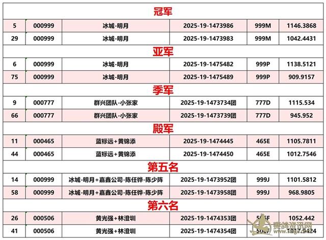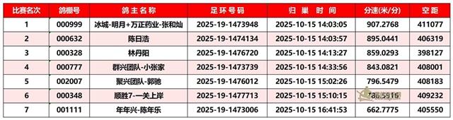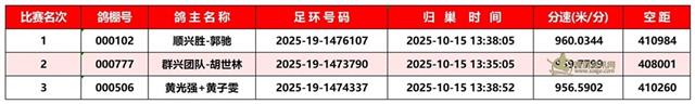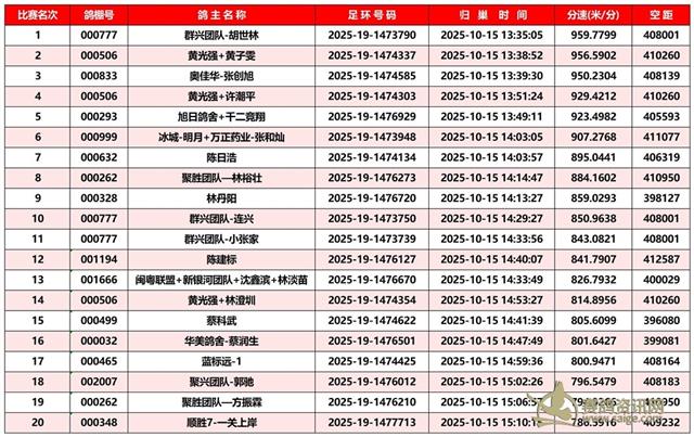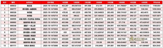 广东汕头市顺翔俱乐部2025年秋季南北四关鸽王赛正四关成绩