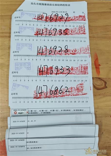 . 广东汕头市顺翔俱乐部2025年秋季南北四关鸽王赛正四关成绩
