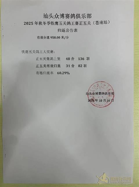 2025-10-18 19:52:29 众博(汕头)信鸽文化交流有限公司