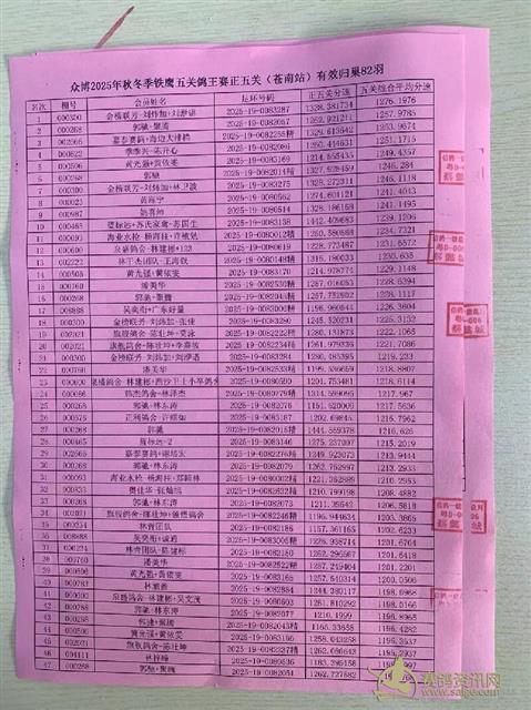 . 众博2025年秋冬季比赛正五关(苍南站)验鸽查棚照片