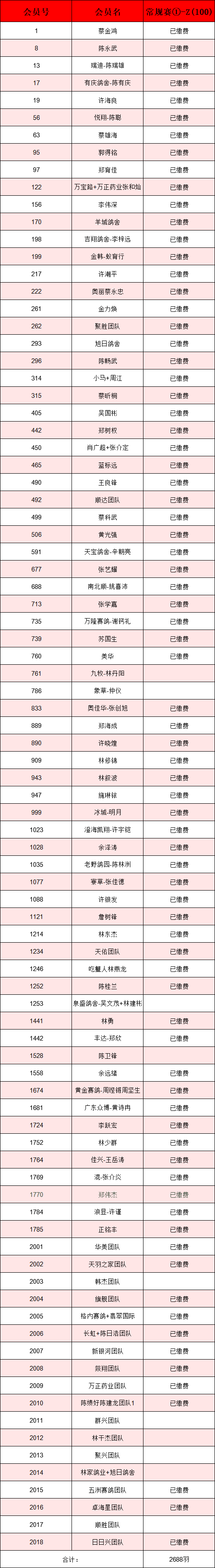 . 广东顺翔赛鸽俱乐部 2026年春季常规赛①第三次缴费明细
