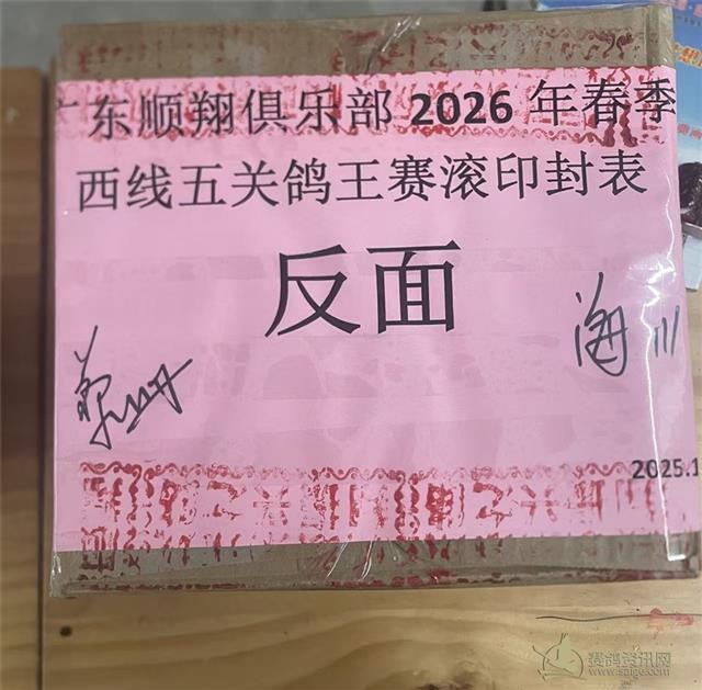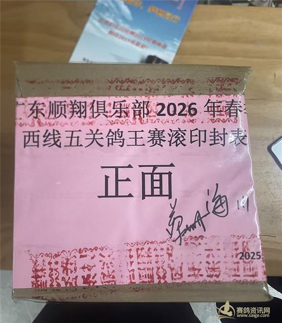 . 广东汕头顺翔俱乐部2026年春季西线五关鸽王赛滚印封表
