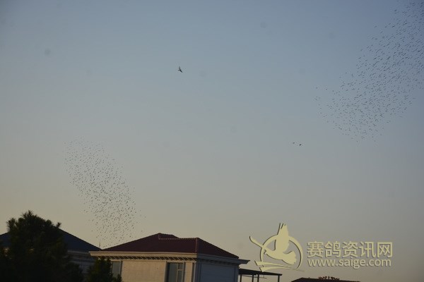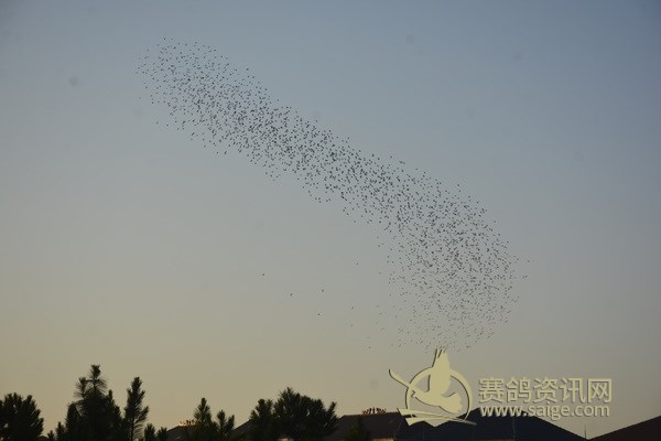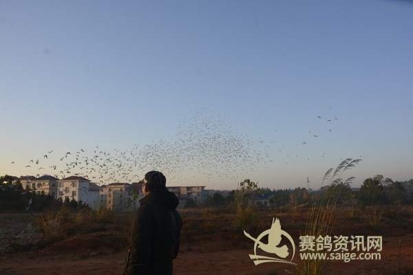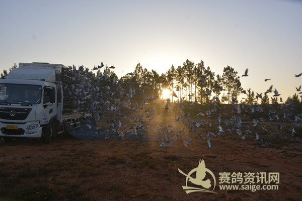 大家都在做好准备工作,由监放裁判刘建辉依次一同检查公棚鸽车的海关钢丝封索完好,并剪断封索同步视频。刘小军早已架起手机打开快手直播,让全国鸽友共同鉴证和分享司放现场,并放出无人机高空全方向摄像。静候太阳从东边升得更高些,让阳光照射得更加光亮些。7:16分,裁判员刘建辉发出口令“广州浩羽黄埔赛鸽公棚第四关总决赛,……,三…二…一…,开笼”,电动徐徐开启笼门,2817羽战将鱼贯冲出笼口,拍打着双翅,腾空而起,带着一股流畅的旋风,在半空中盘旋,抱团群飞,整个鸽群越攀越高,不一会儿分成四个团体定准方向,陆续直往西南方向迅速飞去,走势良好,不一会儿消失在远处的天际中。