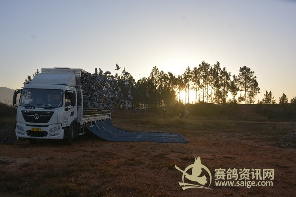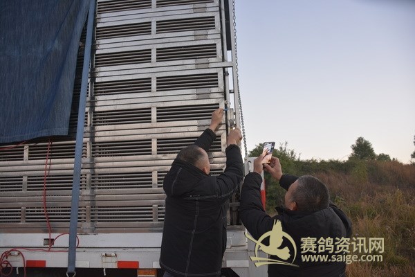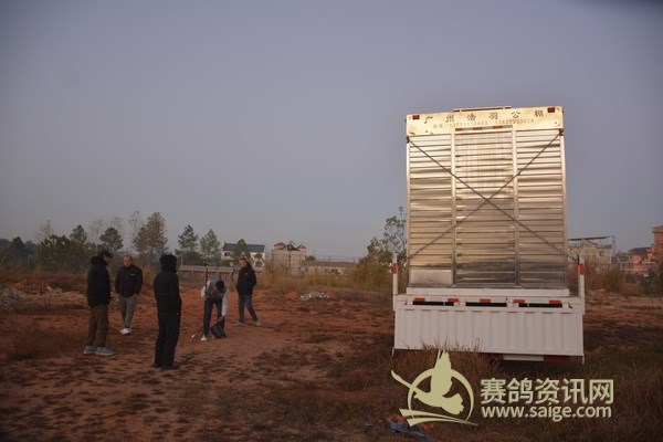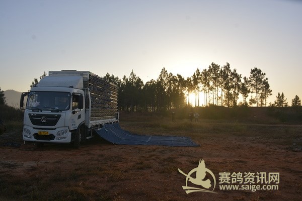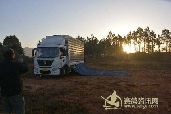 广州浩羽(黄埔))公棚的鸽车于清晨4点多已顺利抵达了吉水县黄桥镇境内的司放地,即是往年决赛司放的位置。早晨6点多,吉水县信鸽协会委派的一级裁判员刘建辉、陈文康、两位同志和鸽友代表彭丰同志先后抵达司放现场为这场赛事现场执裁和监督。