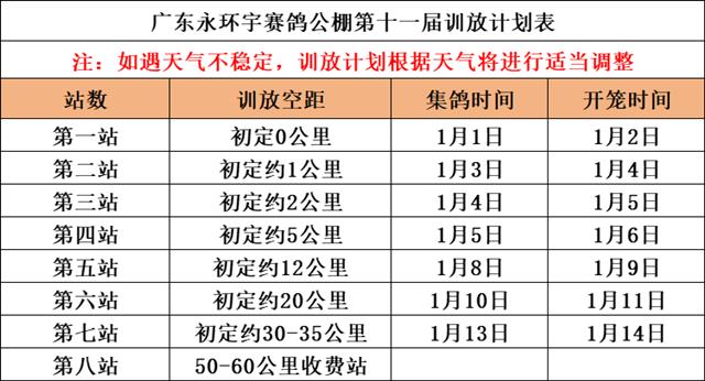 . 广东永环宇赛鸽公棚第七站30-35公里训放公告