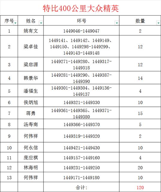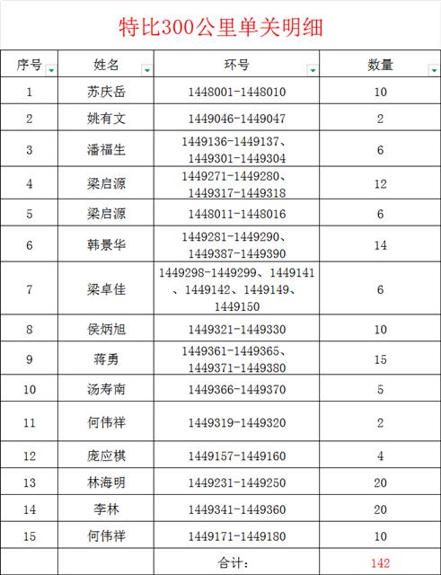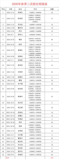 . 【汕鸽协】汕头市信鸽协会2026年春季三关大奖赛幼鸽录入明细