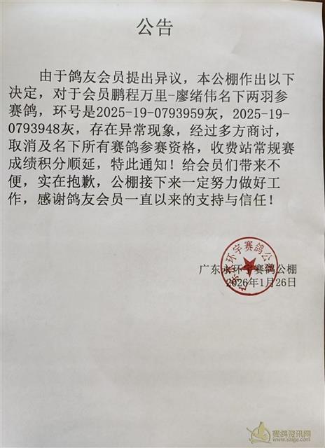 2026-01-27 9:07:29 广东永环宇赛鸽公棚