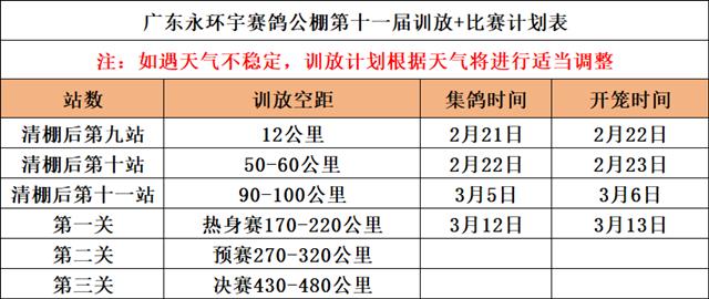 广东永环宇春棚第一关170-220公里热身赛初定公告
