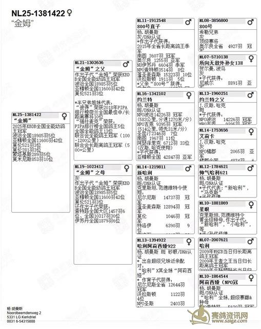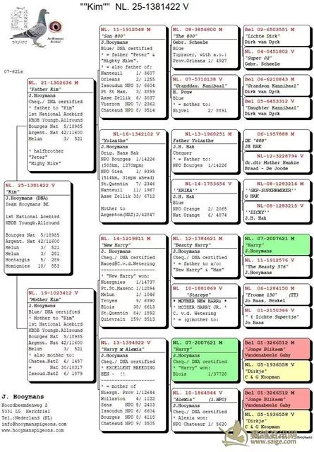 . 25年KBDB全国全能幼鸽王冠军--“金姆”血线图