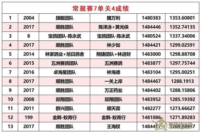 . 广东汕头市顺翔俱乐部2026年春季西线五关鸽王赛正一关成绩