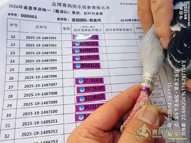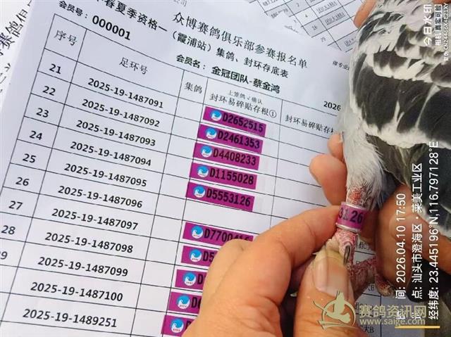 . 广东顺翔赛鸽俱乐部 2026年秋季常规赛②参赛明细