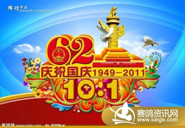 刚刚送走了美丽的嫦娥,又迎来了祖国的华诞。借此机会山东鑫众赛鸽中心呈上对您衷心的祝福:祝您一切顺利,万事如意!祝您的爱鸽在全国各公鹏飞出优异的佳绩!祝愿我们伟大的祖国繁荣富强,和平安康!
