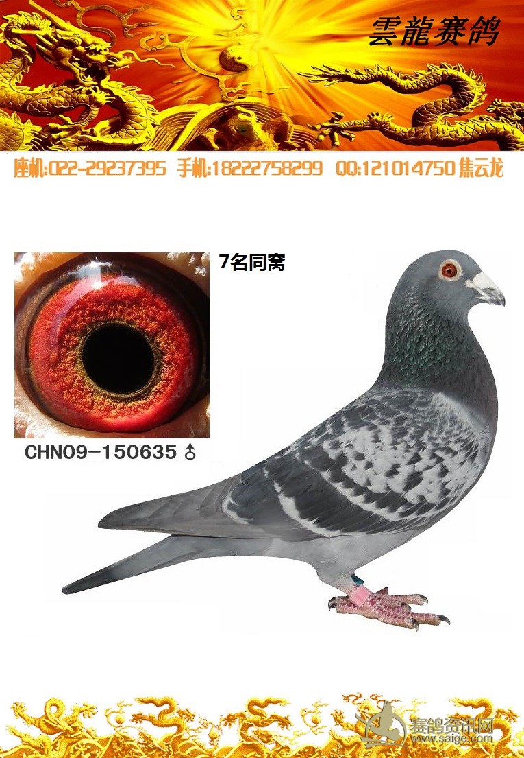 鸽子名称: 足环: 性别:♂雄鸽 眼别: 羽色: 年代: 血统: 作育者: