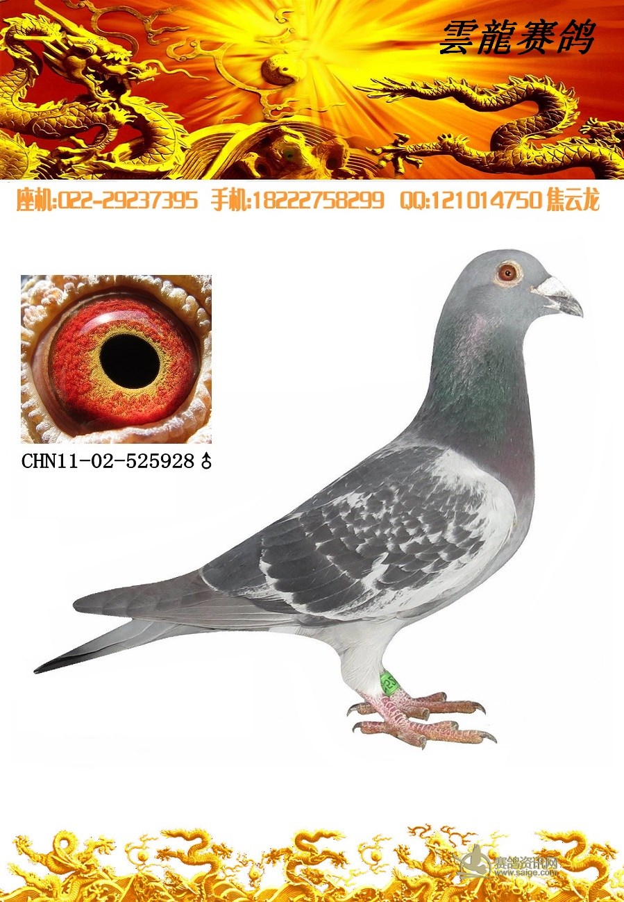 鸽子名称: 足环:2011-02-525928 性别:♂雄鸽 眼别:黄 羽色:斑 年代:2011 血统:凡龙超级73 作育者:焦云龙