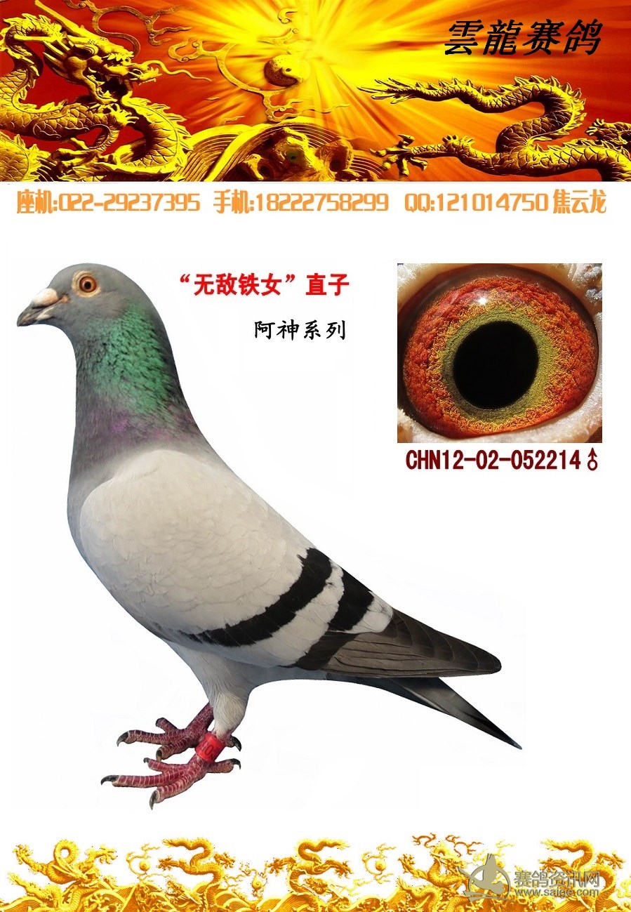 鸽子名称: 足环:2012-05-052214 性别:♂雄鸽 眼别:黄 羽色:灰 年代:2012 血统:盖世 作育者:焦云龙