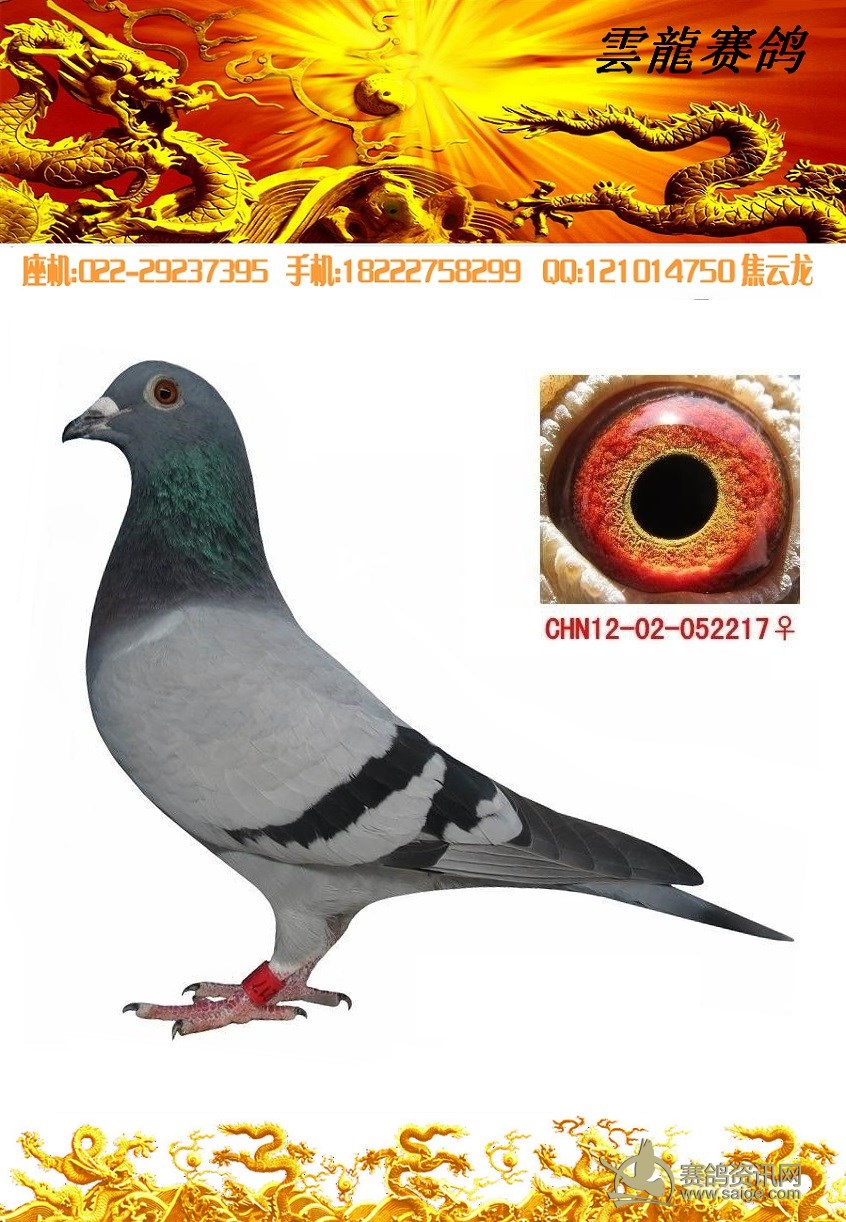 鸽子名称: 足环:2012-02-052217 性别:♀雌鸽 眼别:黄 羽色:灰 年代:2012 血统:盖世 作育者:焦云龙