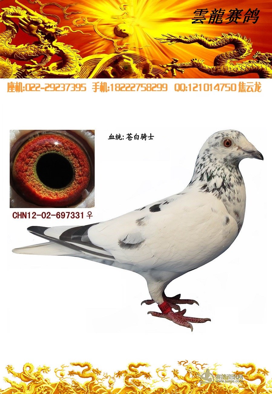鸽子名称: 足环:2012-02-697331 性别:♀雌鸽 眼别: 羽色: 年代:2012 血统: 作育者:焦云龙