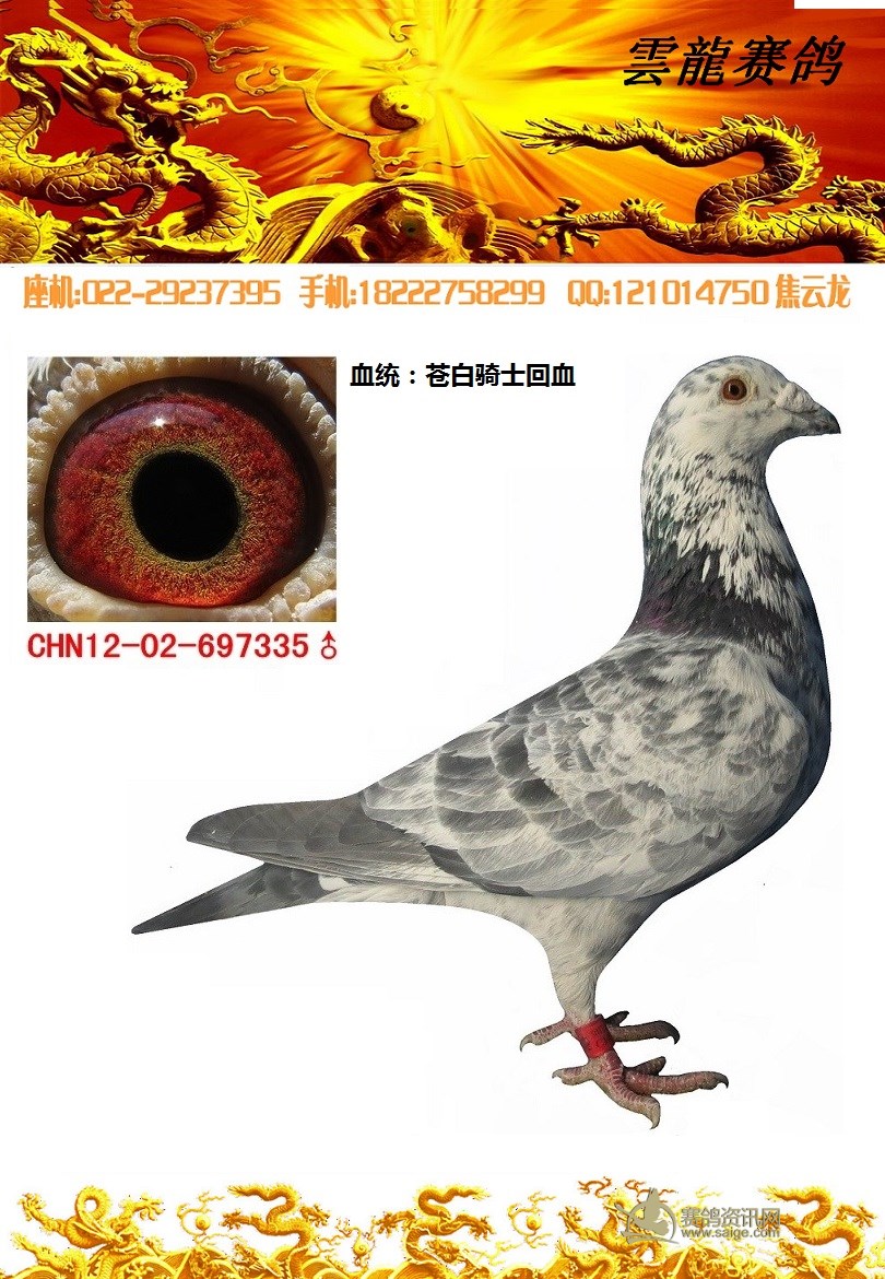 鸽子名称: 足环:2012-02-697335 性别:♂雄鸽 眼别: 羽色: 年代:2012 血统: 作育者:焦云龙