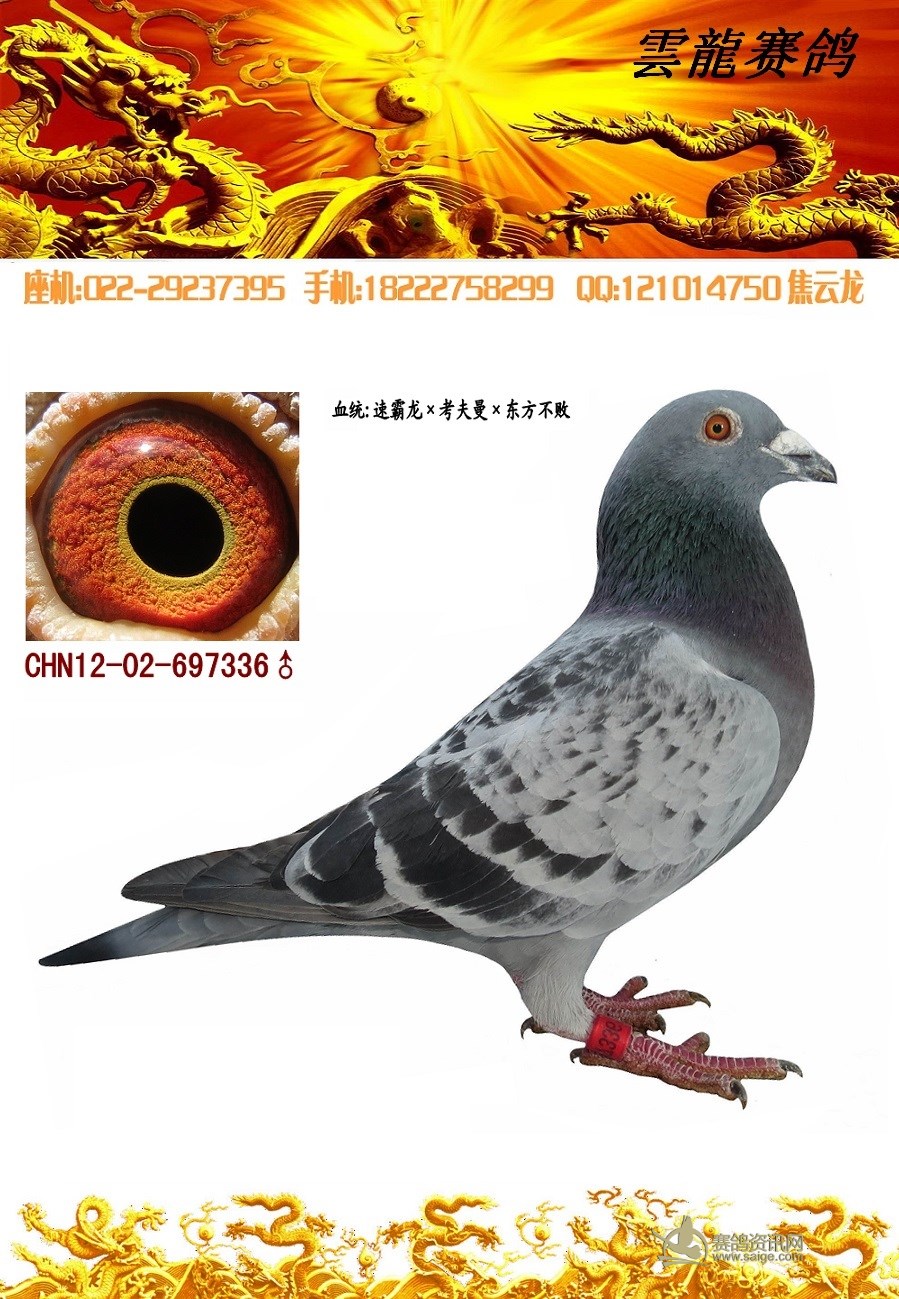鸽子名称: 足环:12-02-697336 性别:♂雄鸽 眼别: 羽色: 年代:2012 血统: 作育者:焦云龙