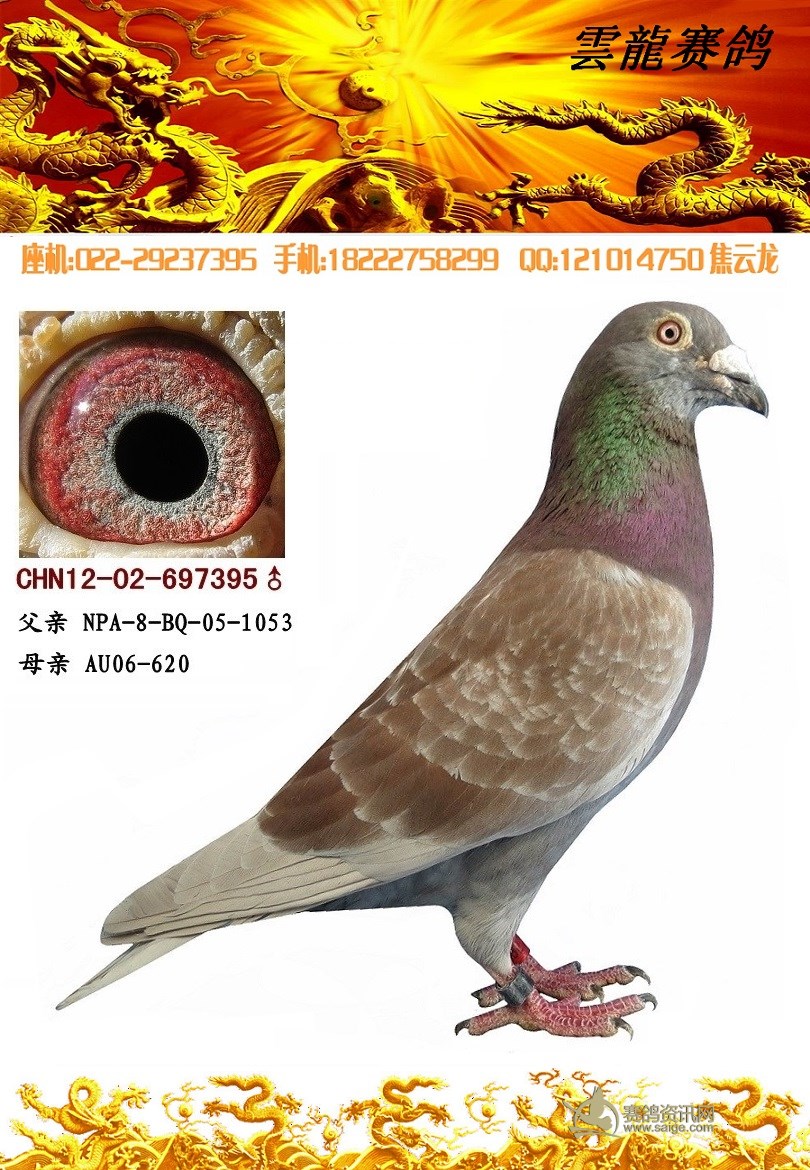 鸽子名称: 足环:2012-02-697395 性别:♂雄鸽 眼别:砂 羽色:红 年代:2012 血统:詹森 作育者:焦云龙
