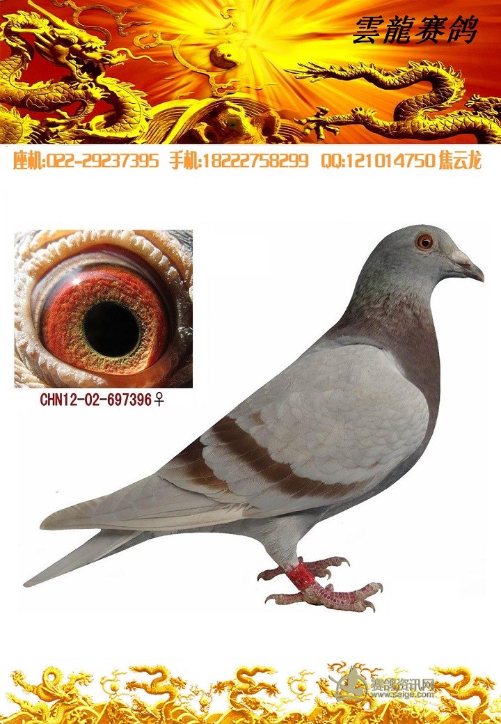 鸽子名称: 足环: 性别:♂雄鸽 眼别: 羽色: 年代:2012 血统: 作育者:焦云龙