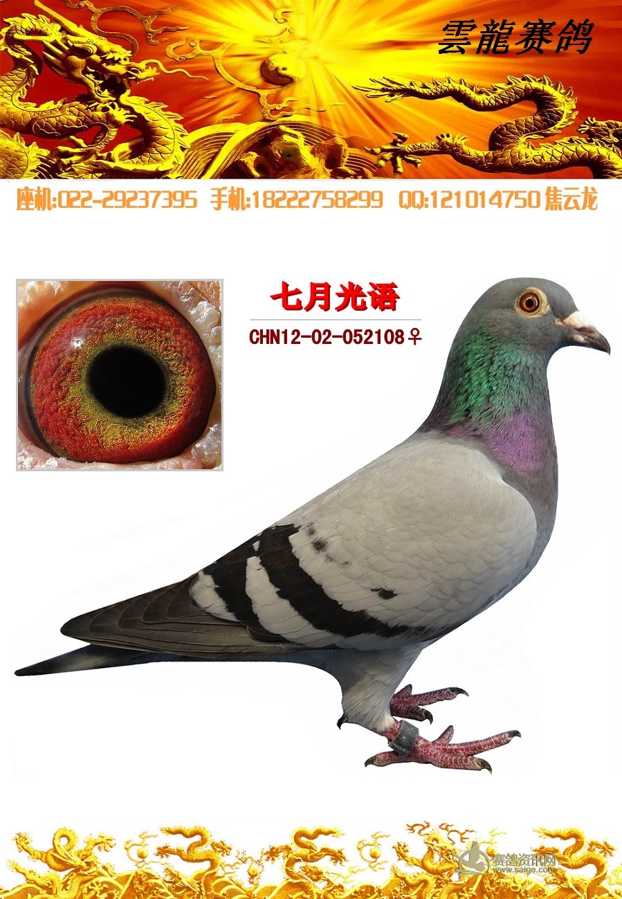 鸽子名称: 足环: 性别:♀雌鸽 眼别: 羽色: 年代:2012 血统: 作育者:焦云龙