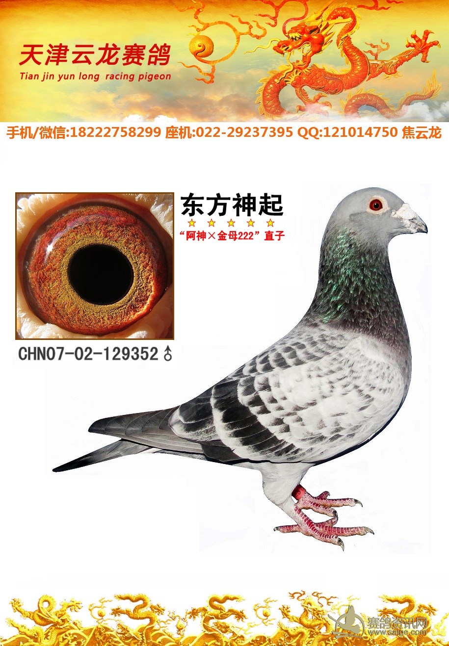 鸽子名称: 足环:2007-02-129352 性别:♂雄鸽 眼别:黄眼 羽色:浅斑 年代:2007 血统:阿神×金母222 作育者:焦云龙
