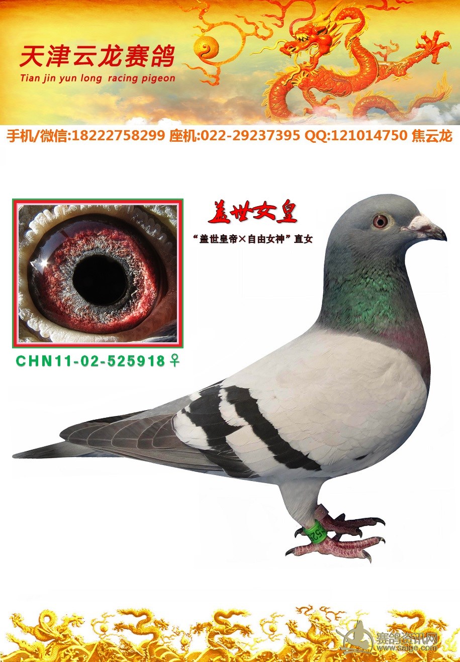 “盖世女皇”已于2014年拆迁售鸽,转让给天津塘沽区鸽友。