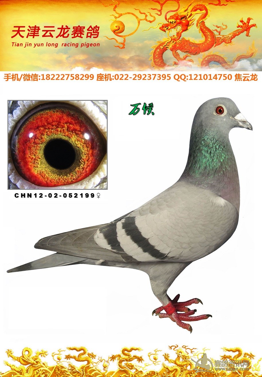 鸽子名称: 足环:2012-02-052199 性别:♀雌鸽 眼别:黄 羽色:灰 年代:2012 血统:万候 作育者:焦云龙