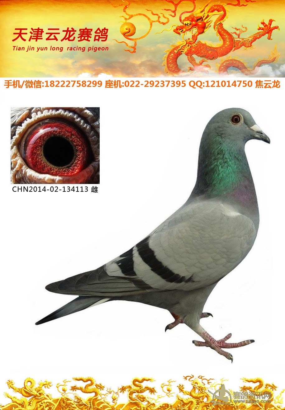 鸽子名称: 足环:2014-02-134113 性别:♀雌鸽 眼别: 羽色: 年代:2014 血统: 作育者:焦云龙