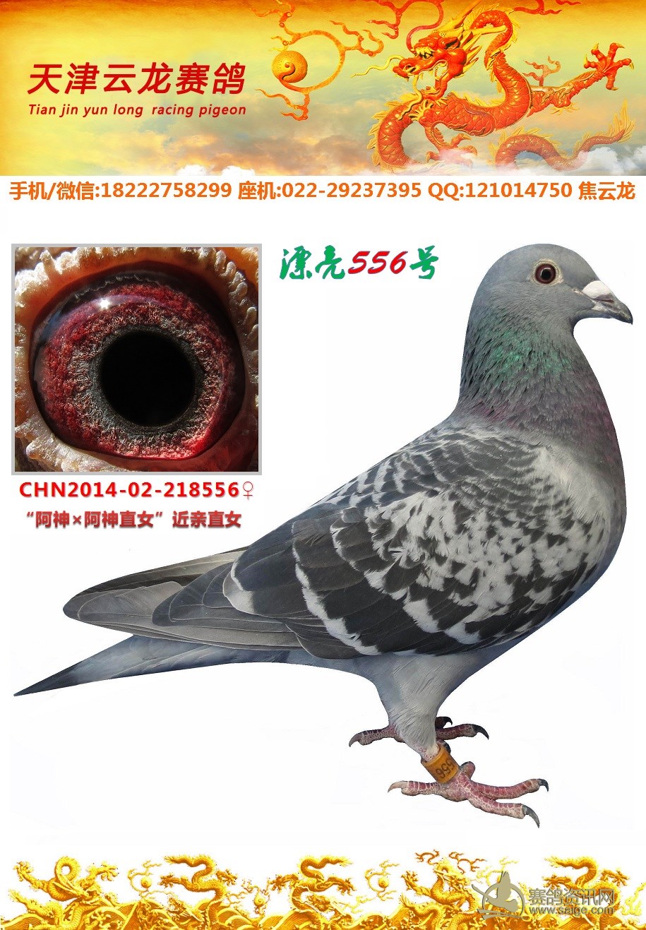 鸽子名称: 足环:2014-02-218556 性别:♀雌鸽 眼别:砂 羽色:黑斑 年代:2014 血统:阿神 作育者:焦云龙