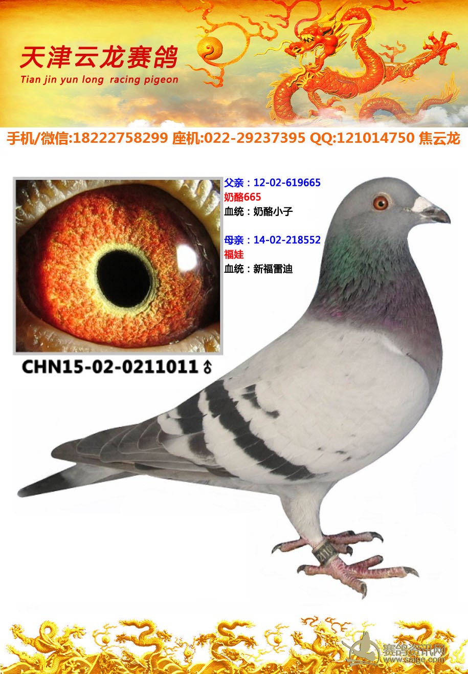 鸽子名称: 足环:2015-02-0211011 性别:♂雄鸽 眼别: 羽色: 年代:2015 血统: 作育者:焦云龙