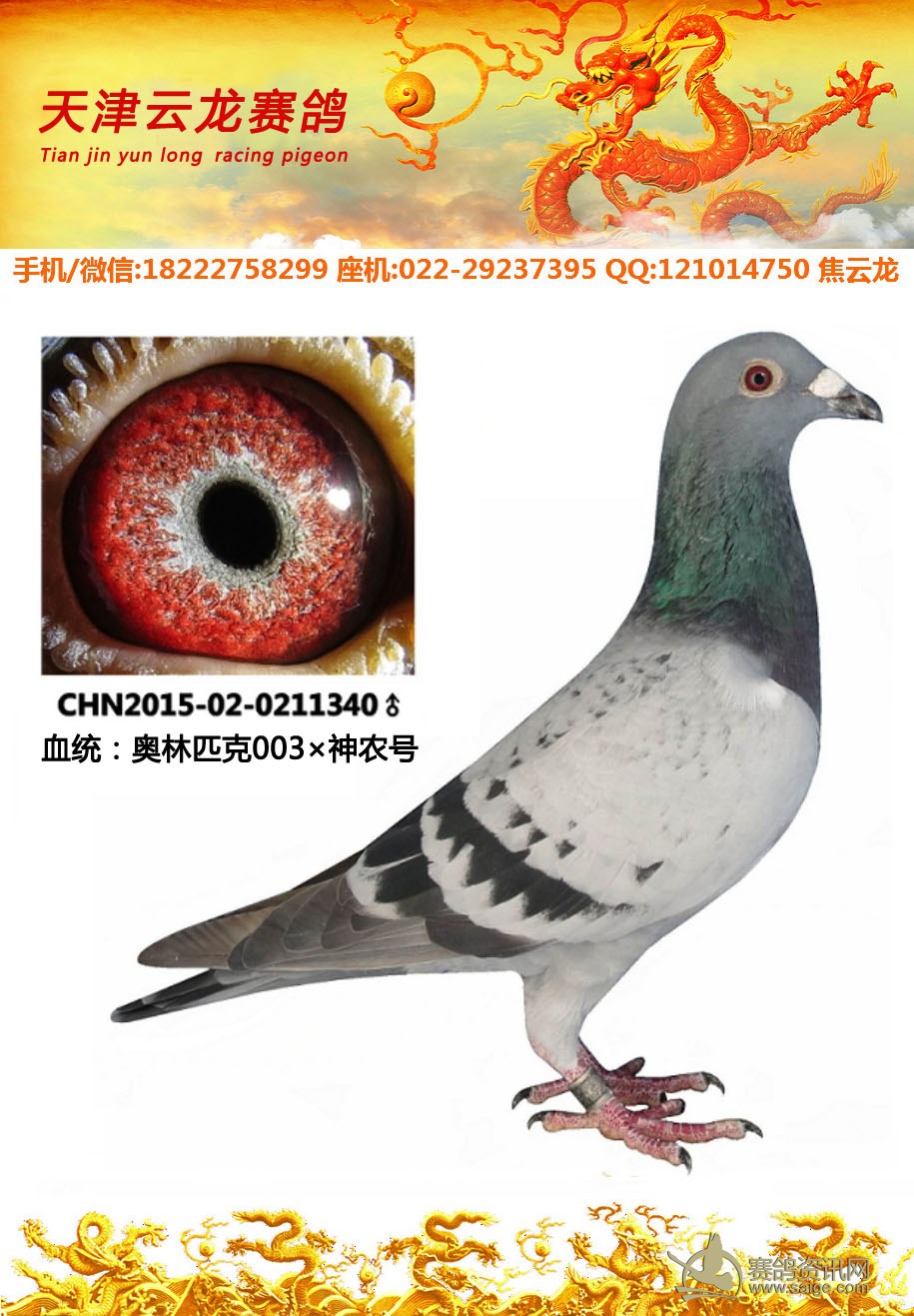 鸽子名称: 足环: 性别:♂雄鸽 眼别: 羽色: 年代:2015 血统: 作育者:焦云龙
