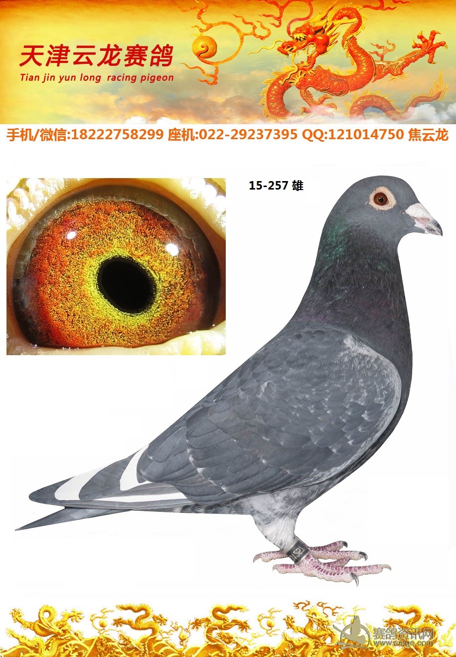鸽子名称: 足环: 性别:♂雄鸽 眼别: 羽色: 年代: 血统: 作育者: