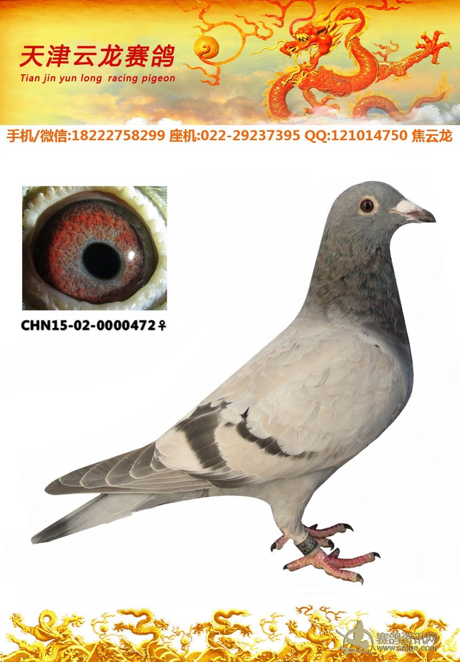鸽子名称: 足环:2015-02-0000472 性别:♀雌鸽 眼别: 羽色: 年代:2015 血统: 作育者:焦云龙