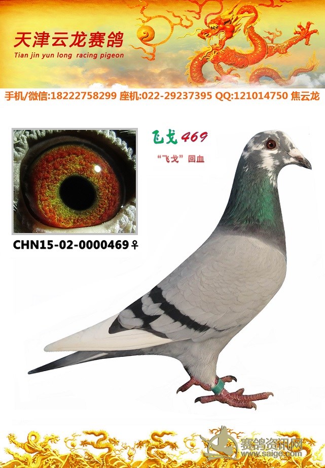 鸽子名称: 足环:2015-02-0000469 性别:♀雌鸽 眼别: 羽色: 年代:2015 血统: 作育者:焦云龙