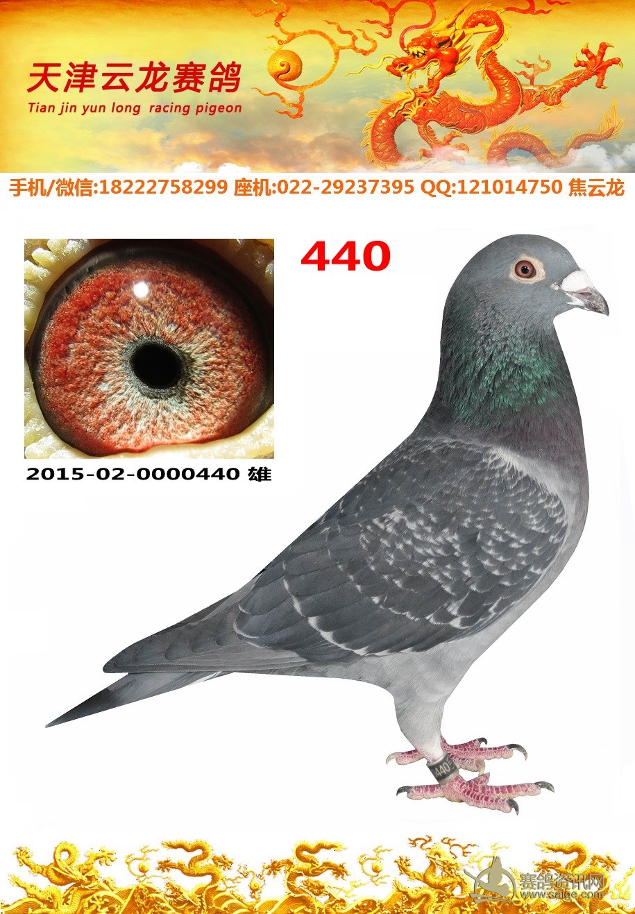 鸽子名称: 足环:2015-02-0000440 性别:♂雄鸽 眼别: 羽色: 年代:2015 血统: 作育者:焦云龙