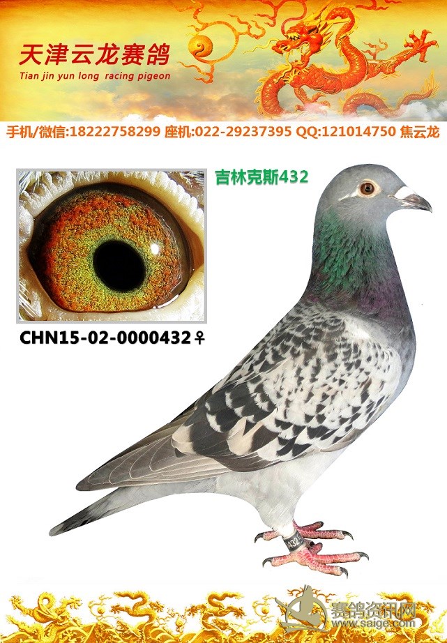 鸽子名称: 足环:2015-02-0000432 性别:♀雌鸽 眼别: 羽色: 年代:2015 血统: 作育者:焦云龙