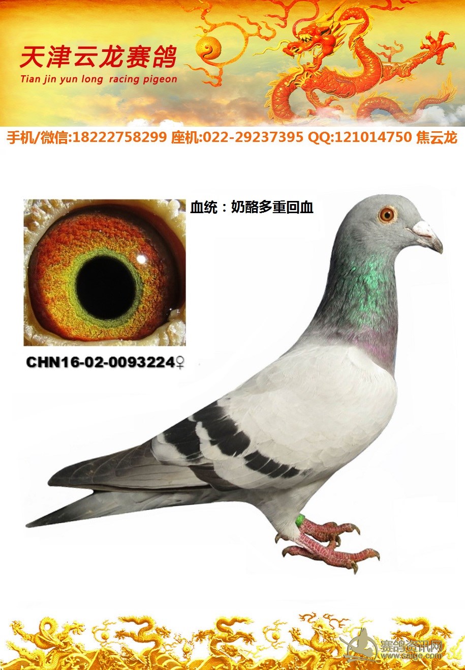 鸽子名称: 足环: 性别:♂雄鸽 眼别: 羽色: 年代:2016 血统: 作育者:焦云龙