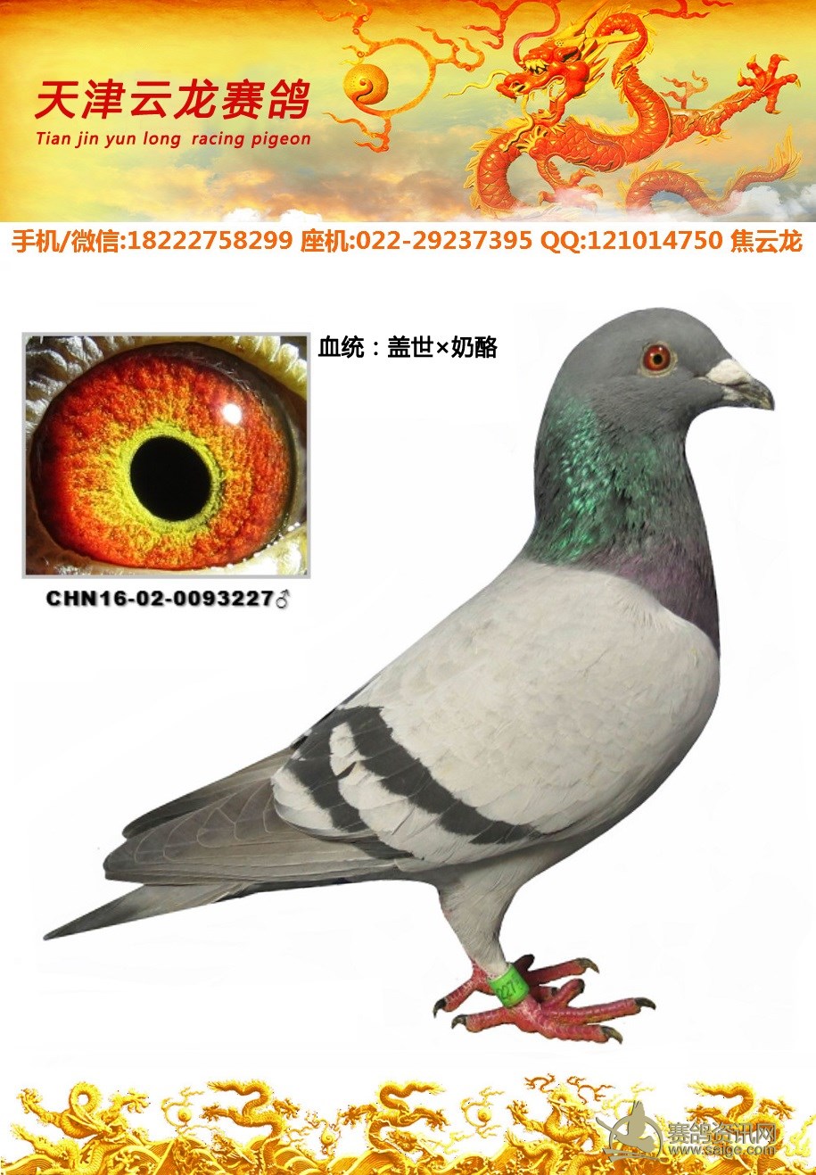鸽子名称: 足环: 性别:♂雄鸽 眼别: 羽色: 年代:2016 血统: 作育者:焦云龙