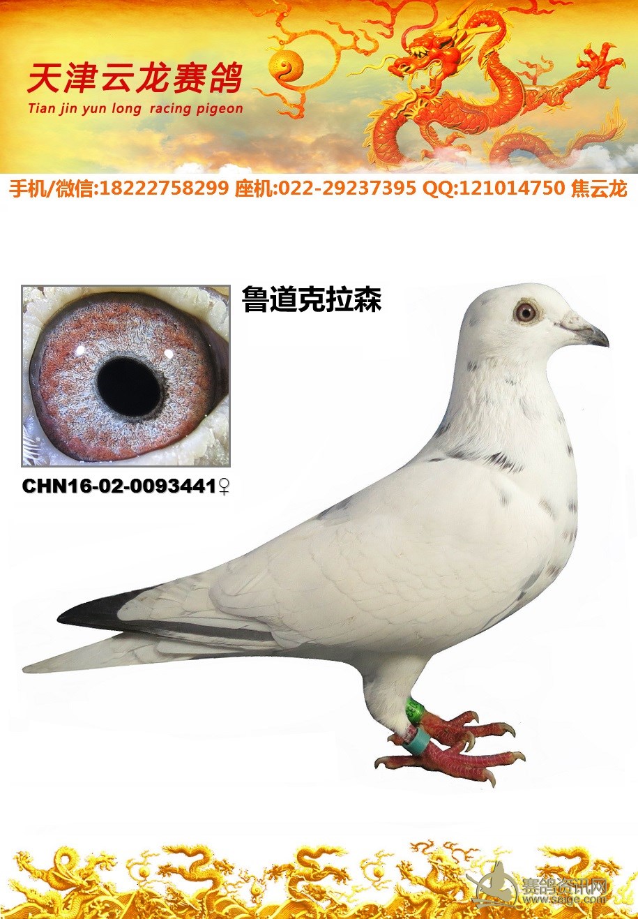 鸽子名称: 足环:2016-02-0093441 性别:♀雌鸽 眼别: 羽色: 年代:2016 血统: 作育者:焦云龙