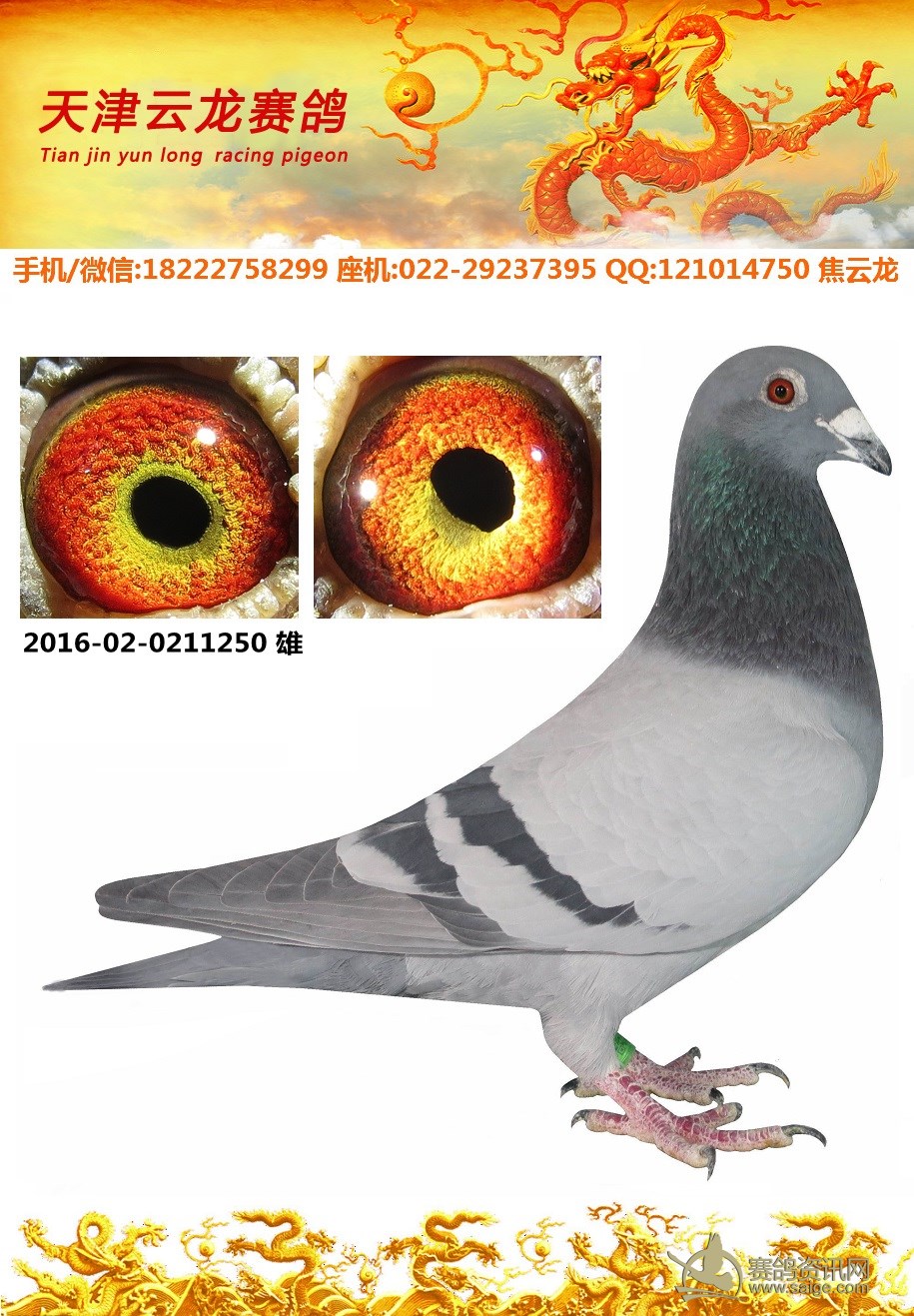鸽子名称: 足环:2016-02-0211250 性别:♂雄鸽 眼别: 羽色: 年代:2016 血统: 作育者:焦云龙