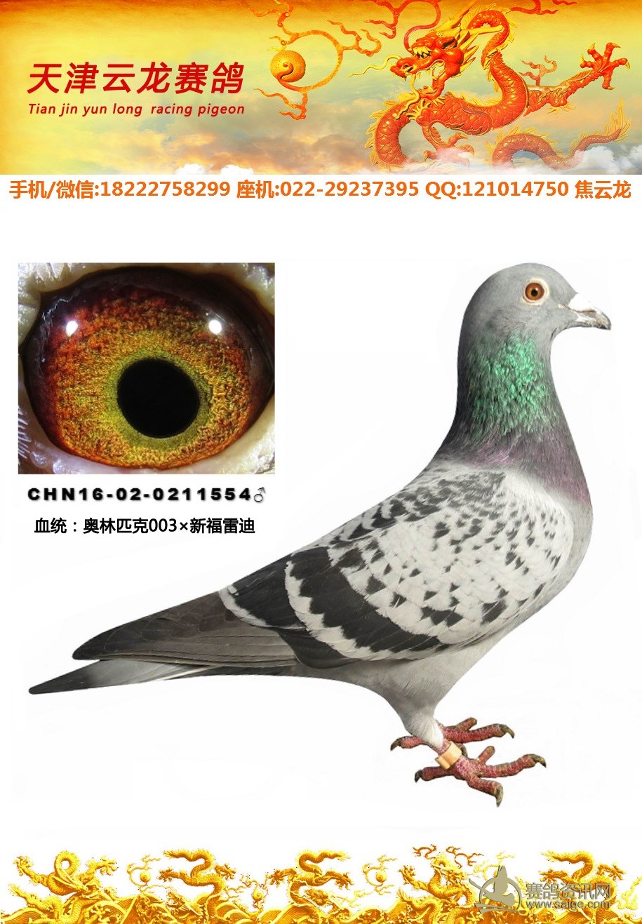 鸽子名称: 足环:2016-02-0211554 性别:♂雄鸽 眼别: 羽色: 年代:2016 血统: 作育者:焦云龙